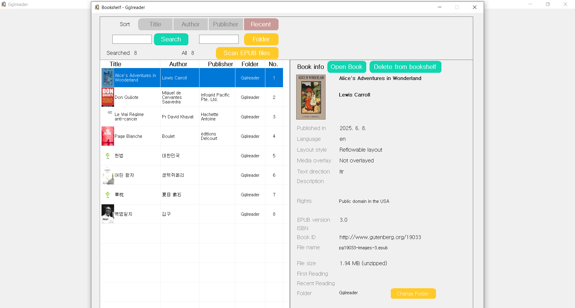 - There are no pre-imported EPUB eBooks in bookshelf of the Epubgle reader by default setting.